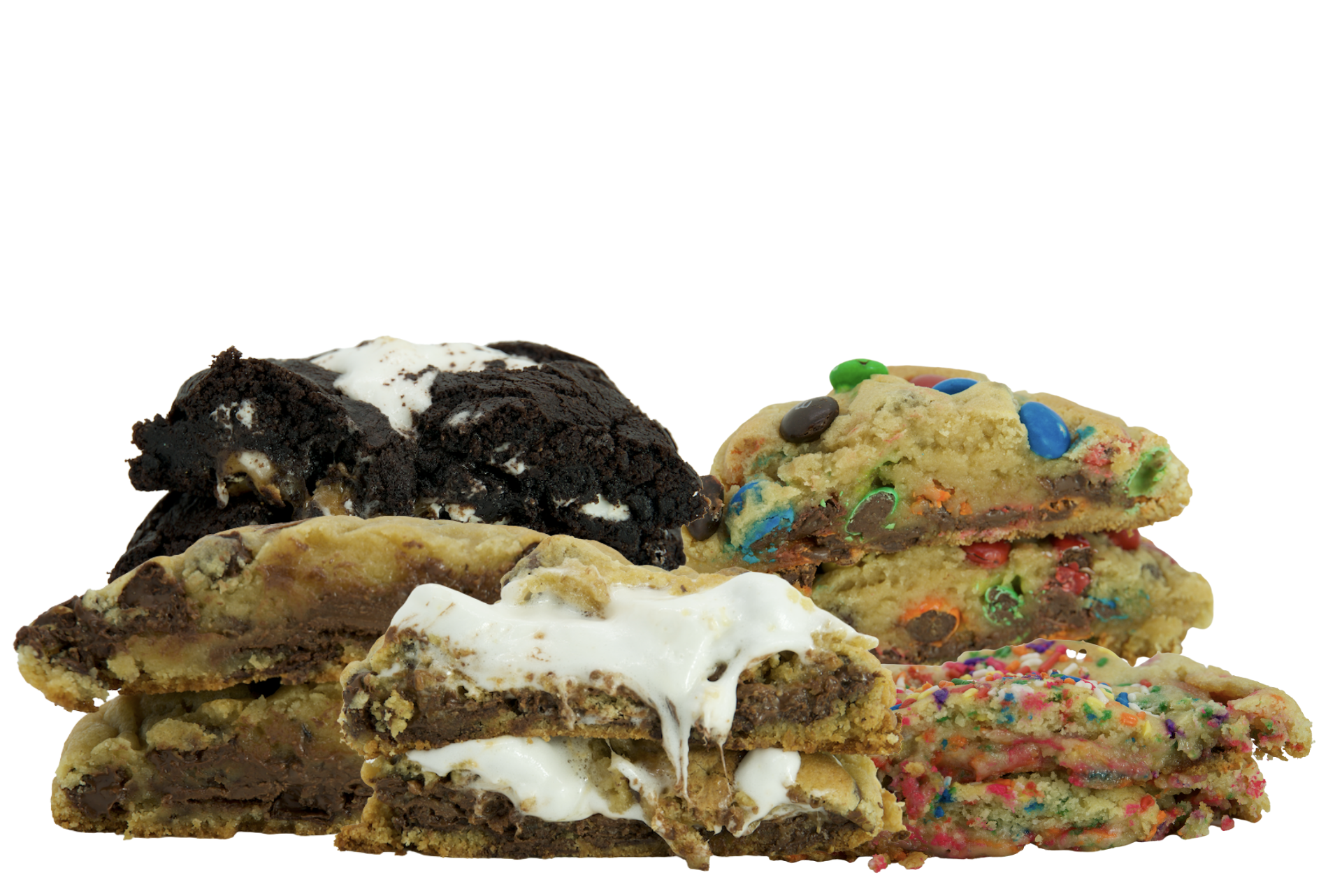 Chocolate Chip Cookie Dough, Chocolate Chip Peanut Butter Cup, Nutella Blast, M&M Madness, S’mores Galore & Funfetti